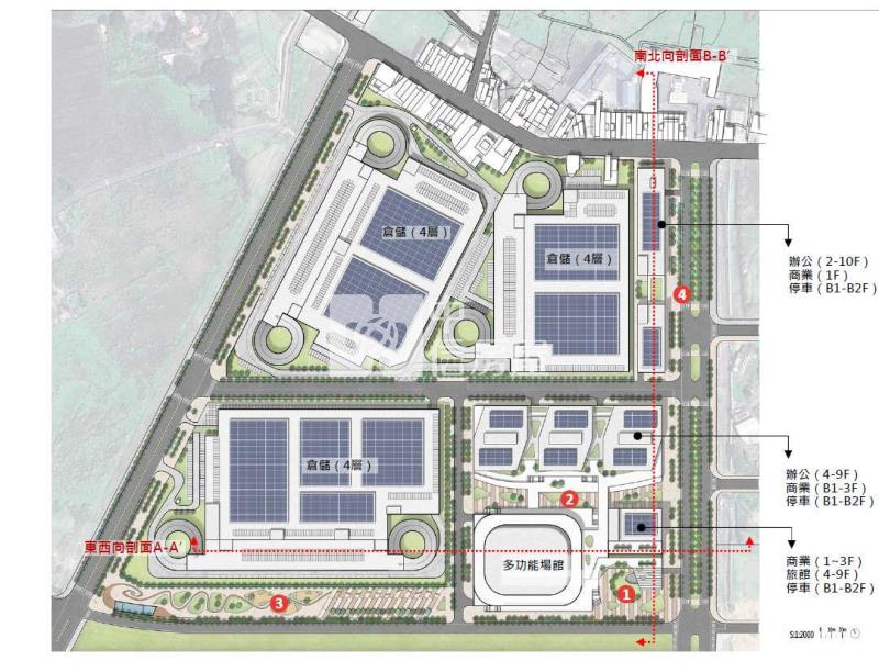 ◼ A-I為複合型商業設施,結合多功能場館、小型商場等。